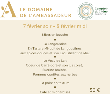 On Saturday 7 February (evening) and Sunday 8 February (lunchtime), Domaine de l’Ambassadeur will be welcoming, for the first time, the catering service Comptoir du Chêne, run by Élodie Destrument, for a pop-up restaurant in the heart of Ébly.